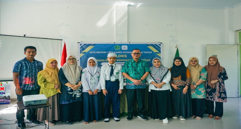 BOLTIM (Kemenag) - Madrasah Tsanawiyah Negeri 1 Bolaang Mongondow Timur menggelar kegiatan Latihan Dasar Kepemimpinan Siswa (LDKS) yang secara resmi dibuka pada Rabu, 25 September 2024. Bertempat di ruang pertemuan MTsN 1 Boltim, kegiatan tersebut dibuka langsung oleh Kepala Kantor Kementerian Agama Kabupaten Bolaang Mongondow Timur, Dr. H. Aswin Kiay Demak, S.Ag., M.Pd.I. Tampak hadir mendampingi Kakankemenag Boltim dalam kegiatan pembukaan adalah Kepala Seksi Pendidikan Islam, Nurtitin Miolo, S.E.I., M.A.P., Kepala MTsN 1 Boltim, Santhy Isa, S.Pd., M.Pd, Bapak/Ibu guru, dan Bapak/Ibu panitia LDKS.